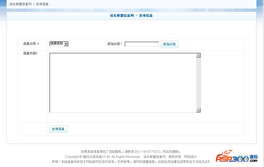 随风分类信息程序适合做本地信息港,简洁,实用,方便。运行环境PHP,数据库MYSQL。