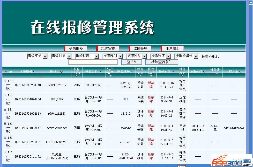 设备维修在线管理系统源码,是一款采用asp编写的一款在线管理源码。