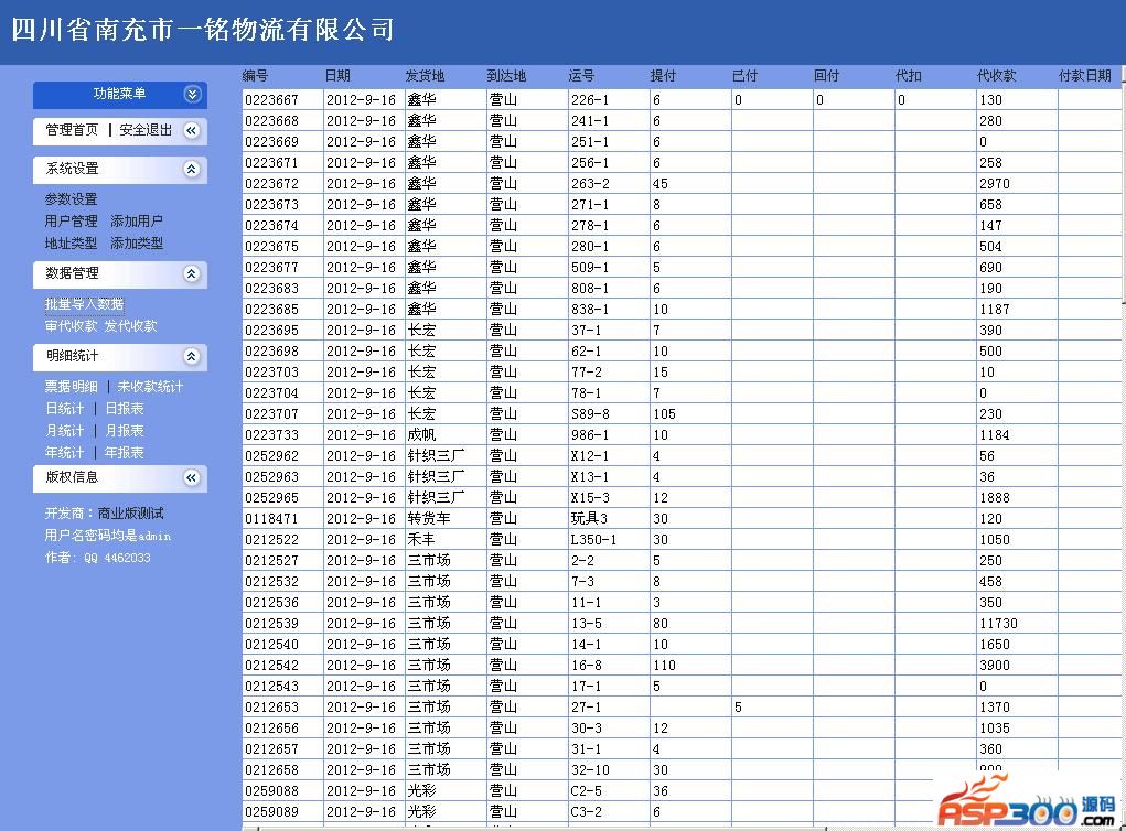 中小型物流公司管理代收货款,批量录入票据、批量审核票据、批量发放代收货款、统计查询、报表查询。