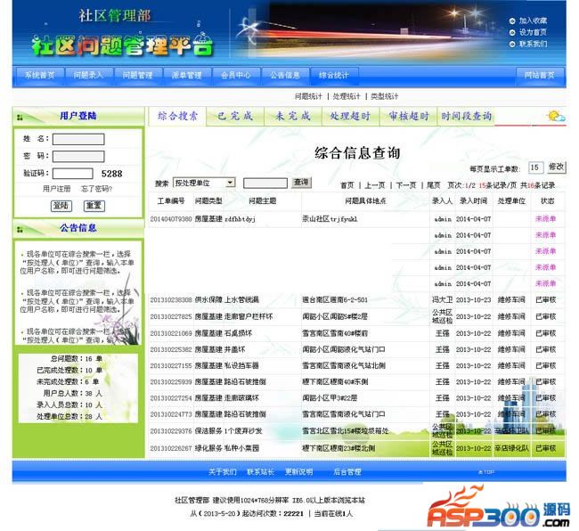 龙品软件社区问题管理平台系统V9.0,是社区各类问题信息管理的理想平台。系统分为问题信息的录入与管理;派单管理;问题处理;综合统计;公告信息等。