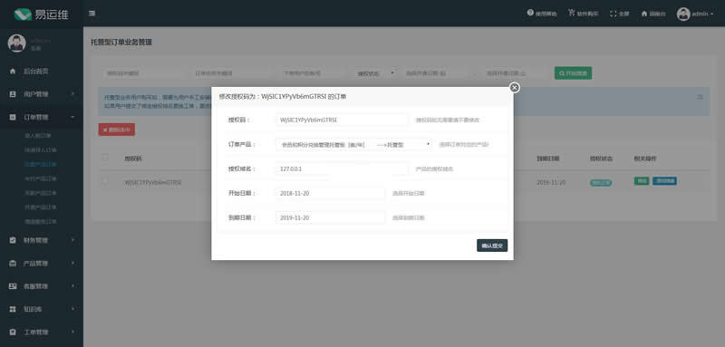 5、自助业务订单管理(可自助修改授权域名,即时生效)