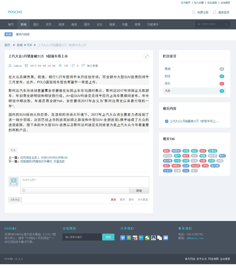 PhpOpenSourceCMS(简称POSCMS)是Php+Mysql开发的一款开源的跨平台网站内容管理系统,以“实用+好用”为基本产品理念,提供从内容发布、组织、传播、互动、“PC+移动”的一体化网站解决方案。