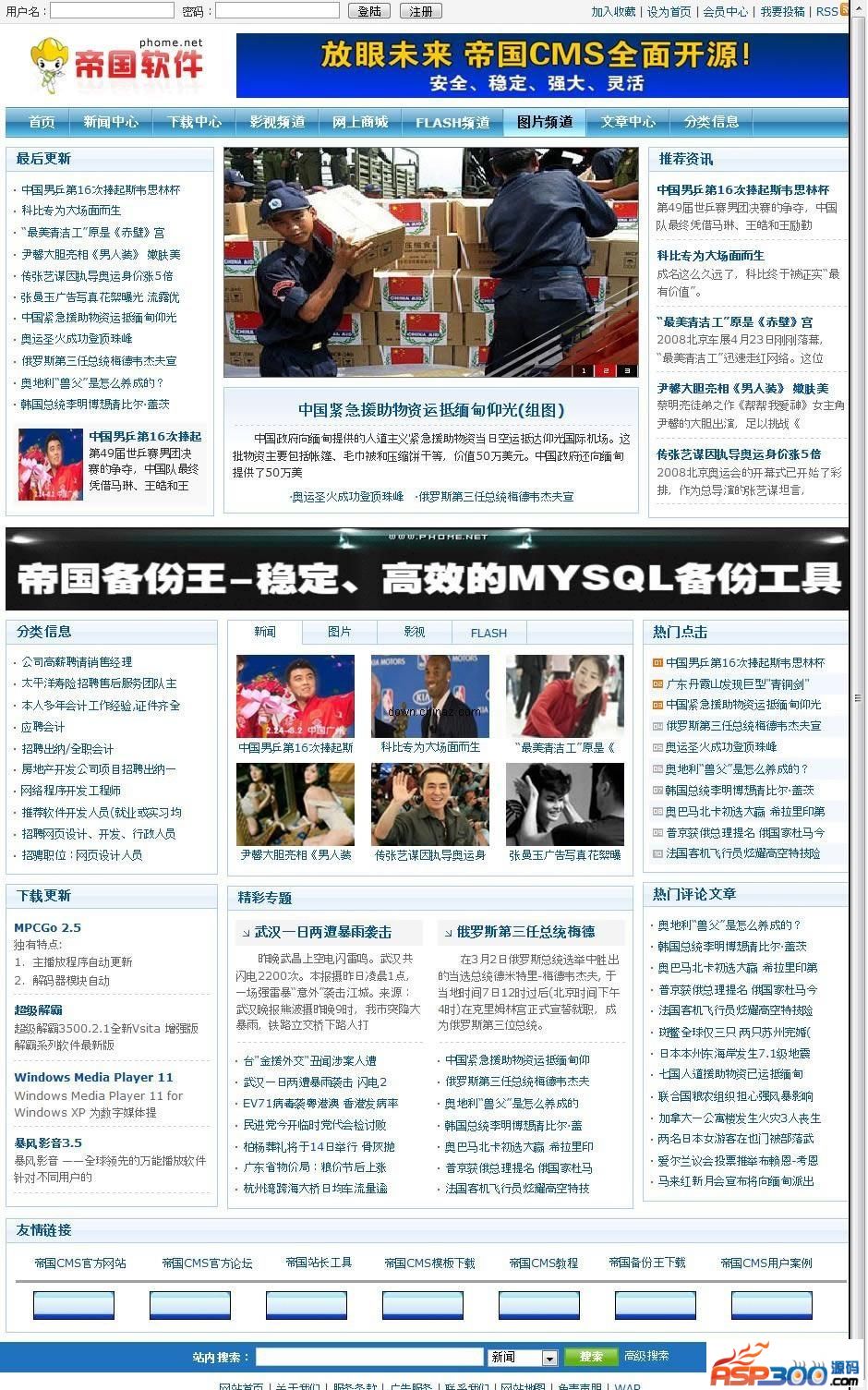 本系统由帝国软件工作组独立开发,是一个经过十多年不断完善设计的适用于Linux/windows/Unix等环境下高效的网站解决方案。从帝国新闻系统1.0版至今天的帝国网站管理系统,它的功能进行了数次飞跃性的革新,使得网站的架设更加方便与管理更加无忧!