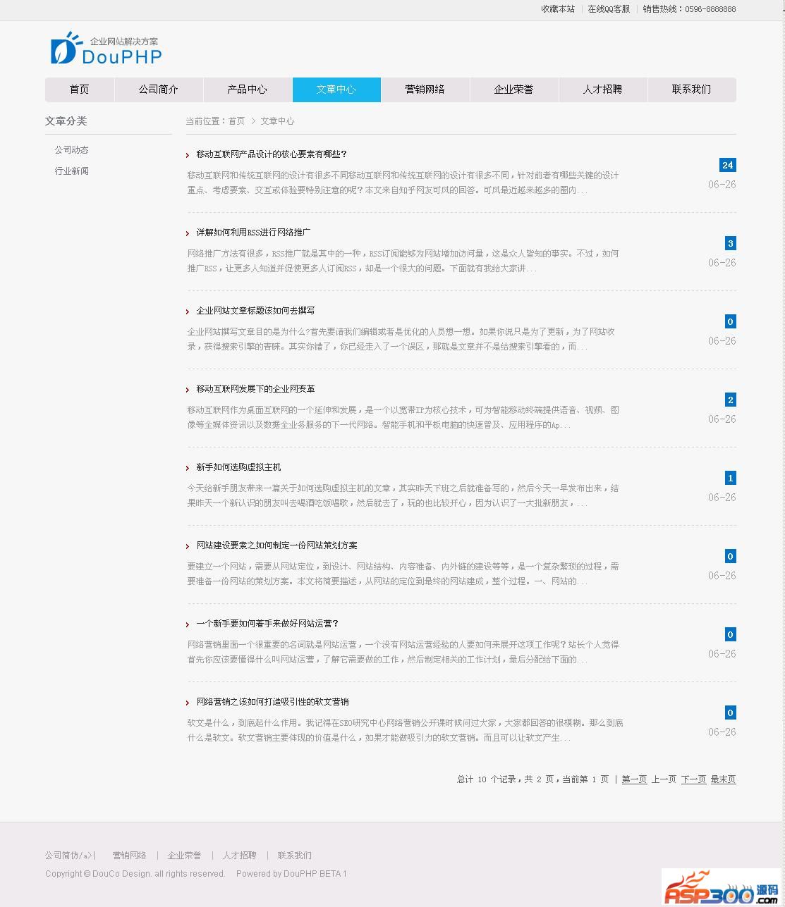 DouPHP 是一款轻量级企业网站管理系统,基于PHP+Mysql架构的,可运行在Linux、Windows、MacOSX、Solaris等各种平台上,系统搭载Smarty模板引擎,支持自定义伪静态,前台模板采用DIV+CSS设计,后台界面设计简洁明了,功能简单易具有良好的用户体验,稳定性好、扩展性及安全性强,可通过后台在线安装模块,比如会员模块、订单模块等,可面向中小型站点提供网站建设解决方案。
