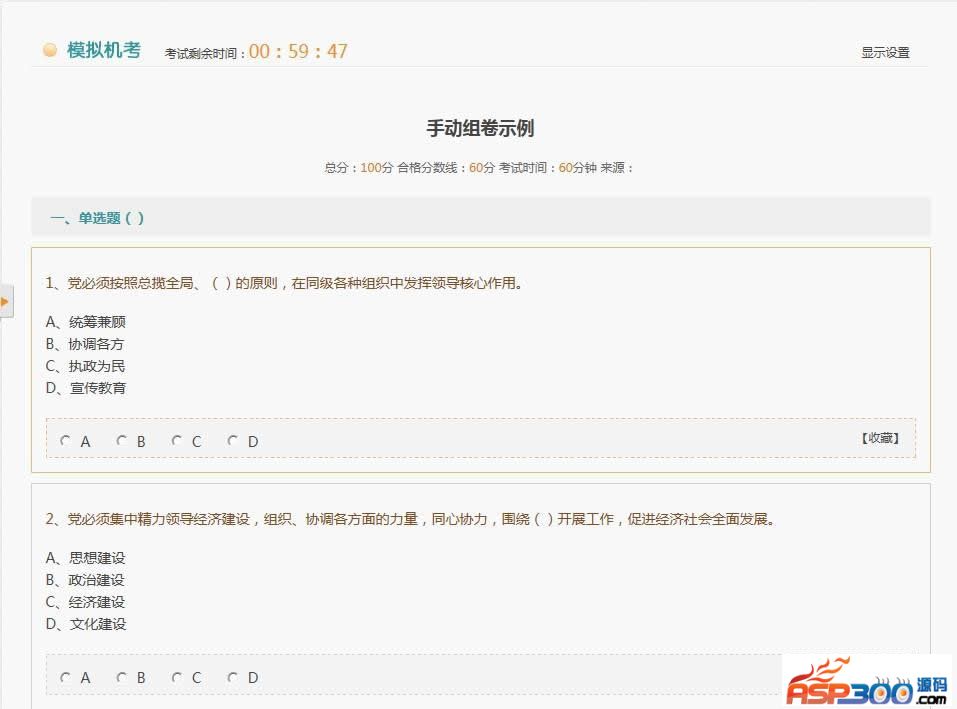 用于构建在线考试系统,如驾照、英语等练习系统。