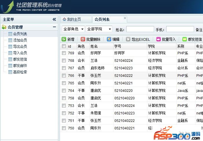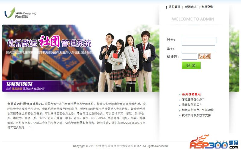 优品致远社团信息管理系统v1.0是国内第一流的大学社团信息管理系统,能够多条件精确搜索到会员群之后,带昵称给会员群发手机短信,带昵称给会员群发Email邮件,通过Excel数据文档批量导入会员数据,能够通过后台直接导出全部的会员信息,可以精准匹配会员之后,导出筛选之后的会员。可以自行添加、修改、删除会员,字段为:学院、系、专业、班级、姓名、学号、密码、手机、QQ、email、办公电话、地址、邮编、博客等等,可扩展字段。记录与会员的交往记录,让您管理社团如鱼得水,游刃有余。