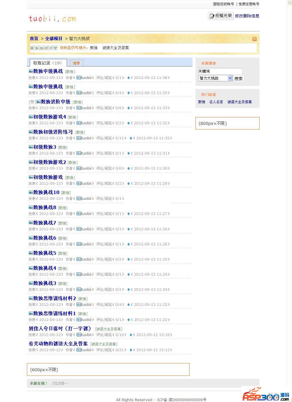 演示空间最近备案中,可能无法正常访问。以下说明认真看看,很有帮助的。无广告无后门,无版权,三无产品纯公益哈!测试数据默认管理员:tuobii 密码:123456安装,先建立数据库,在源码中,直接修改set/set_sql.php,填写数据库名称,密码,上传文件,访问,登陆后台管理。程序中有测试数据可以使用,将tuobii.sql导入数据库既可以看到效果。方便前期测试,测试好了在删除测试数据导入或添加自己的数据就ok了。导入数据库的时候注意版本信息,高版本不支持低版本,现在一般的主机应该都可以的。自己安装的服务器套装可能会有版本问题。说明:我个人喜欢修改源码,看看别人的编程风格,有完美主义倾向,擅长seo,但是美工很一般。这套系统开始是在网上下载的一个论坛系统。绝对相对比较简洁。就下载下来修改了一下。现在即可以做cms,也可以做分类信息网站。当然他本身是个论坛。会有功能还是比较强大,文章审核和在线编辑都比较容易。管理界面做了很大程度的美化。1、由于论坛帖子页面一般是不显示文章列表的,在修改风格的时候增加了“最近更新”和“较多关注”两个栏目。2、同时由于之前没有tags功能。在数据库中新增了字段用于支持tags。主要是从seo的角度去考虑,更利于增加点击率和搜索页数。3、最开始的那个论坛由于想实现快速搜索,增加了搜索表,但是删除的时候没有完全同步。本系统修改后正常。4、为了能够在3中系统之间正常切换,系统的优化了评论的显示。5、这套系统的广告布局利用txt直接添加代码方便而快捷,当然各有所好。修改也是很容易的,去掉包含文件直接添加代码也不错。或者更有创意的方式。我个人不提倡用数据库的方式管理广告。广告嘛,也不能太多,还要考虑变化。数据库没有页面方便。6、修改了用户名片的显示,更加清爽易用。同时管理界面更加简洁。不像一般的系统太复杂,操作都要看上一天的说明,更别说修改了。如果你想要一套清爽的系统,架设一个个人网站,专题网站,某个爱好的网站。行业信息分类的网站。本套系统在实用不过,他虽然没有那些主流的系统那么多无聊的功能,但是简洁,以控制。容易修改。更重要的是,我虽然花了近2个月去修改一些细节和之前作者部分加密的内容,一些漏洞,一些无聊的版本版权信息。但是你不需要记住我,也不需要添加任何的版权,链接,完全看你的心情,你想怎样就怎样!!绝对的自由!当然整个页面很多风格看起来还有很大加强和完善的余地,但不要全盘否定哦,很多细节是陶腾多年搜索引擎优化的心得哦。要琢磨下内链结构的用途哦。:),好了,喜欢的朋友,用得愉快。我QQ:1085746694 ,有需要找我,注明来意。广告的朋友,其它需求,绕道,谢谢。修改程序以前的信息2、论坛、分类信息二合一系统,双用网站建设。3、MySQL分区、索引操作,快捷运行、高效承载。5、强大的管理后台:无限级自由分类、风格模式转换、伪静态支持、文章审核、成员管理、群发邮件、支付宝收银……6、精炼的用户中心:头像在线生成、个人名片制作、文章管理、悬赏、收藏、短信、货币及信誉管理……7、所见即所得的tuobiiediter论坛编辑器。8、多管理员及版主支持。9、栏目分类已预装完毕,可按照自己的需要修改设定。10、轻松管理广告位。11、浏览器测试IE6、IE8、360、Firefox、Chrome、Safari、Opera兼容。12、更多精彩实用尽属tuobiiFIcode二、【程序安装】1、打开压缩包,将包内文件直接上传至支持PHP+MySQL的空间即可。2、管理员后台地址:manager.php。或管理员登录后点击帐户名后面的小钥匙图标进入后台。3、基础管理员:admin 基础管理员密码:admin4、提示:最先进行数据库设置,建立数据表后即可正常使用。