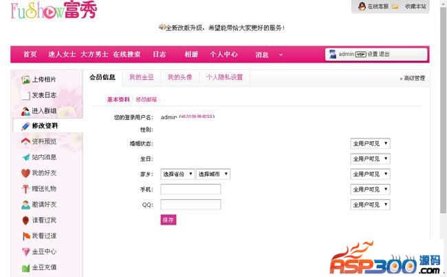FuShow Friend可视化在线交友系统源码是采用网页视频模式cms系统,服务端采用php语言,支持网页视频聊天,主题秀场等,是轻量级的web视频网站建设系统。系统具有投入低,部署快,web开源等特点,是建设各种视频网站的首选,只需网页既可视频交流,秀场直播等,该系统同时支持苹果和安卓版,让pc端网页直接和手机视频面对面。