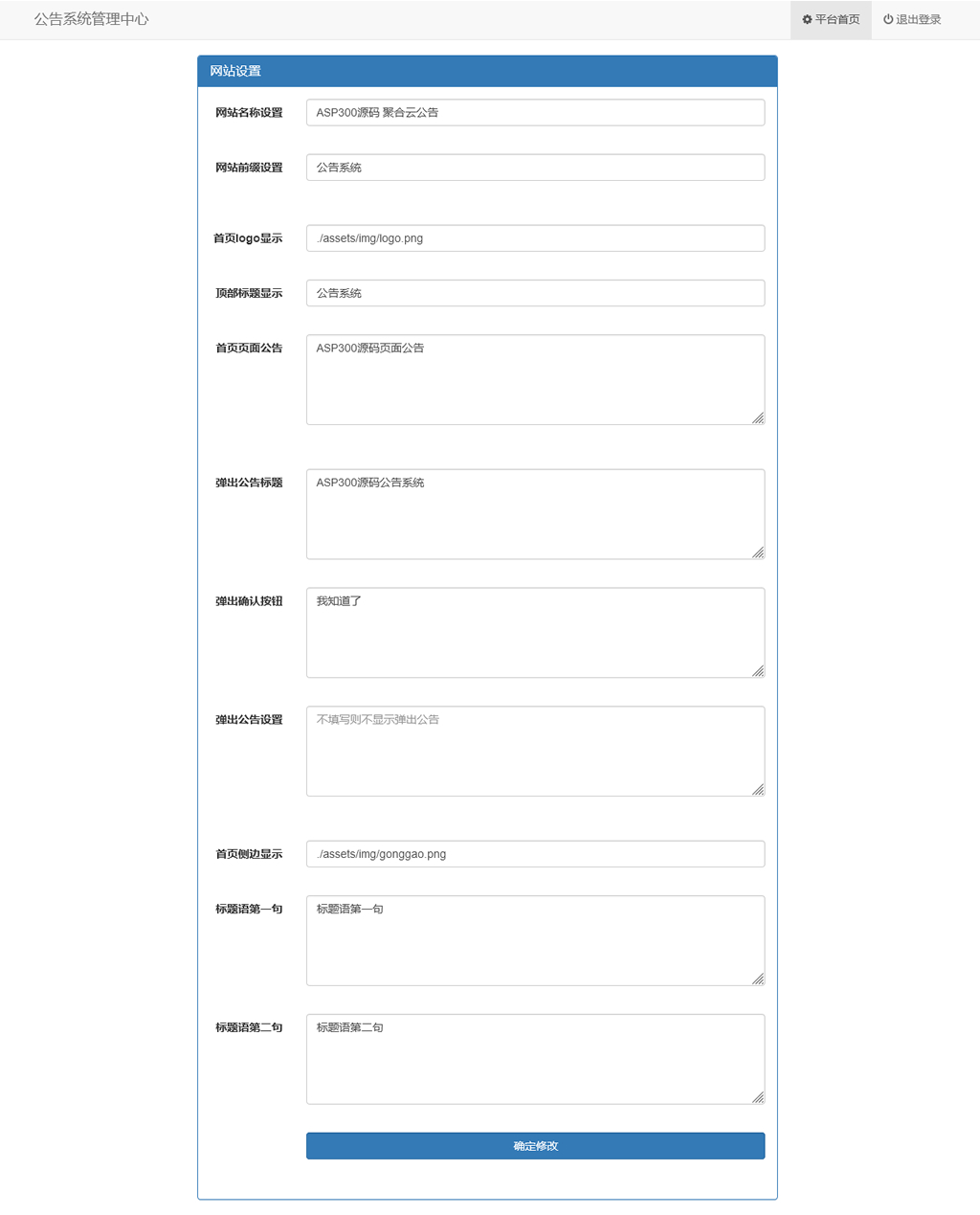 网站公告通知系统带后台源码,没什么特点 就是单纯的把彩虹的公告系统给抠了出来 功能简单实用,有需要的可以下载改装。 声明:本站所有资源均来源于互联网收集,仅供学习参考使用,如若本站内容侵犯了原著者的合法权益,可联系我们进行处理。