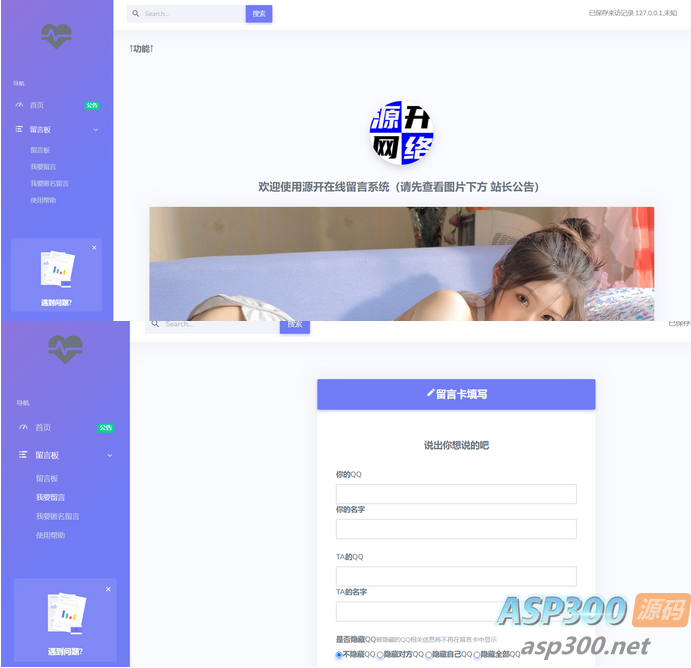 本系统为某位大佬的表白墙系统二开,嘎嘎简单,仅做了很简单的改变 改成了留言墙了 先看图 老规矩 下载链接放最下边 声明:本站所有资源均来源于互联网收集,仅供学习参考使用,如若本站内容侵犯了原著者的合法权益,可联系我们进行处理。