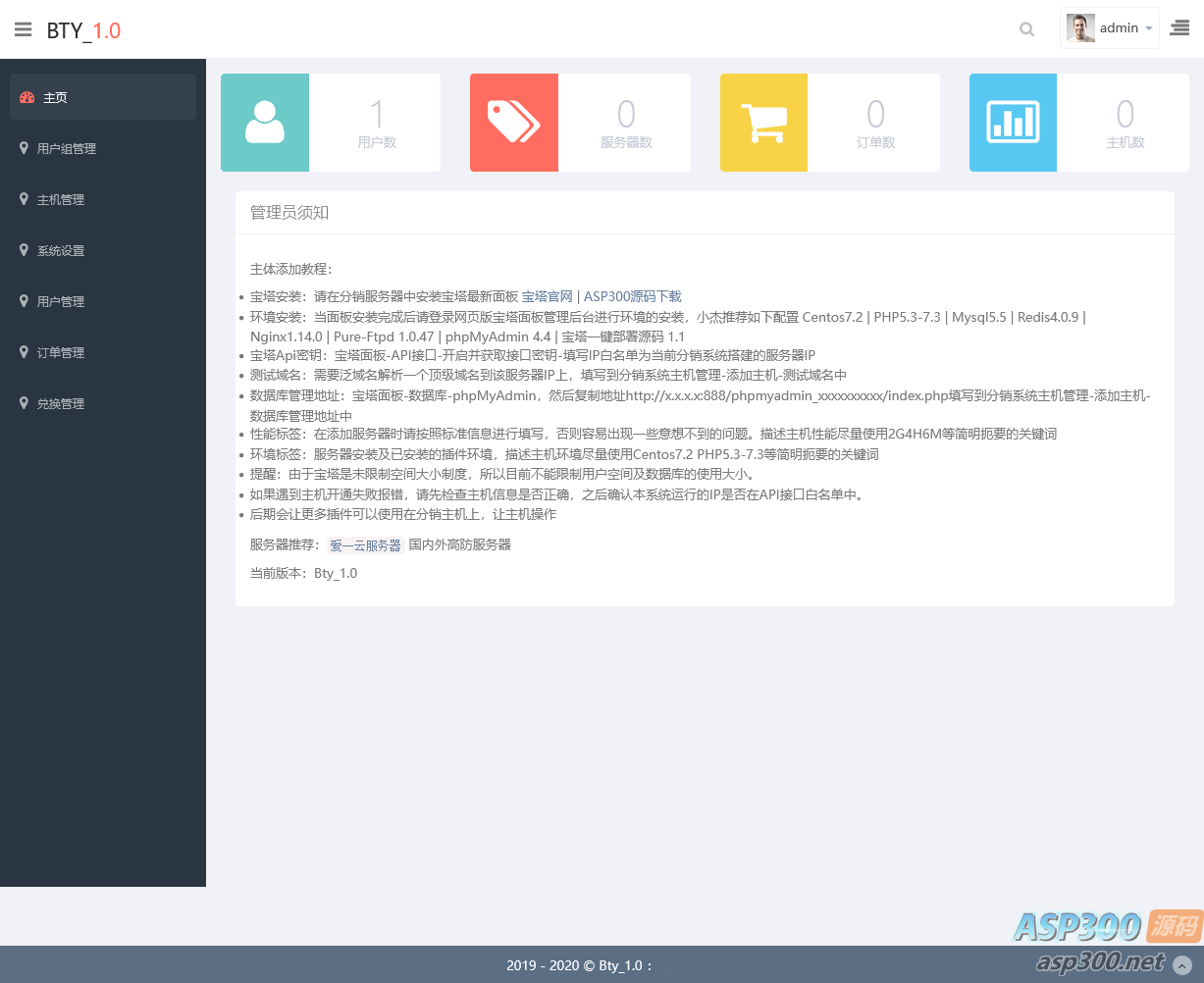 该系统基于宝塔开放API底层控制器,进行主机控制,目前可以完成大部分主机操作功能如:新增主机、修改主机配置、删除主机、查找主机、以及宝塔面板能开放使用的主机操作功能,由于宝塔面板的单一用户性,所以开发这款可以由个人操作的IDC分销系统。