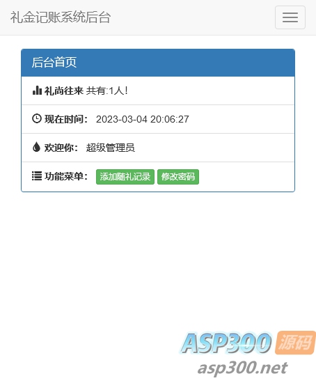 份子钱礼金记账查询PHP源码,因为亲朋好友比较多在收份子钱之后还礼总是要打开微信查找转账记录,如果隔的时间比较长还丢失,所以就简单该改了一下数据查询系统,前台访问查询需要验证独立密码,后台支持新增记录,修改记录,搜索记录,免费使用开源无加密。