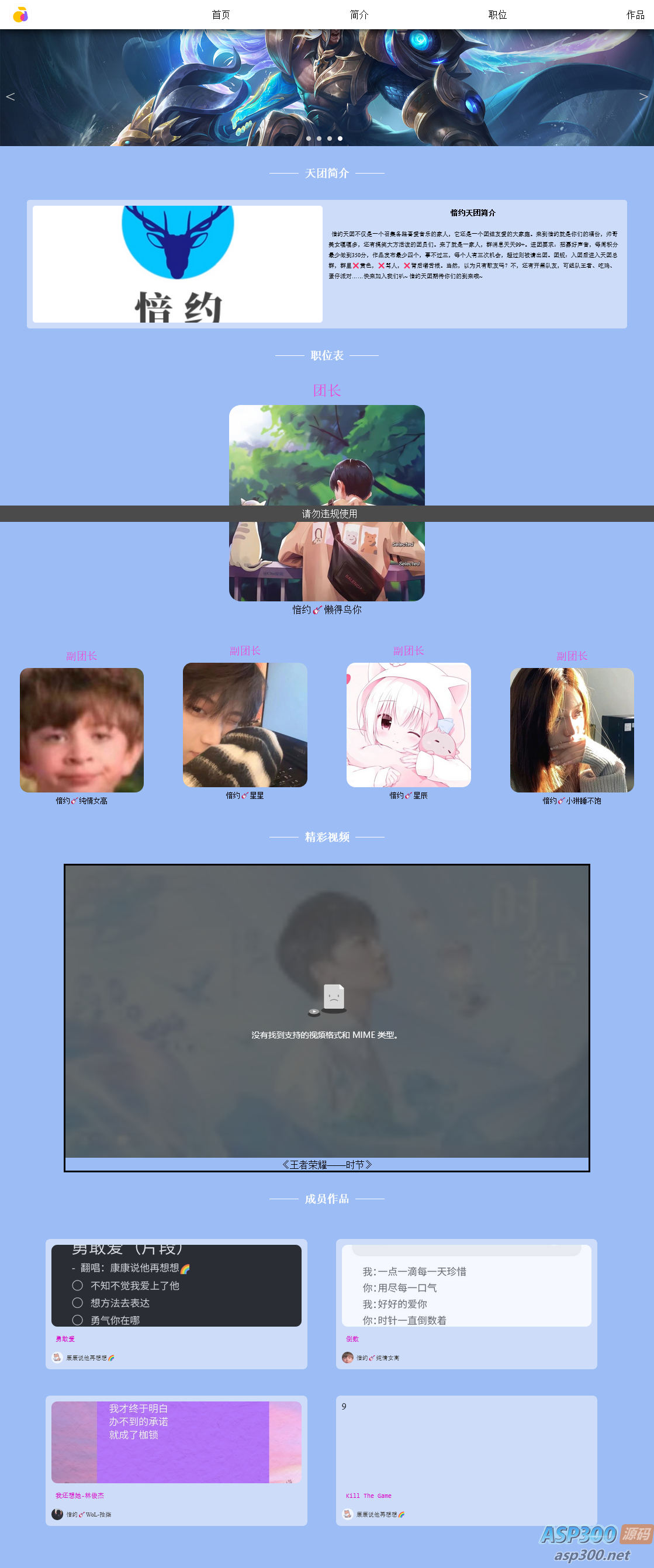 愔约天团官网团队介绍源码,适合做个人,团队介绍页,有个作品块点击弹出播放视频,用来做个人作品展示和视频介绍还是挺不错的,就是源码不带后台修改首页信息在index文件内,源码无加密。 声明:本站所有资源均来源于互联网收集,仅供学习参考使用,如若本站内容侵犯了原著者的合法权益,可联系我们进行处理。