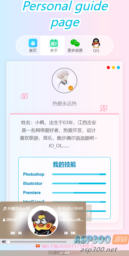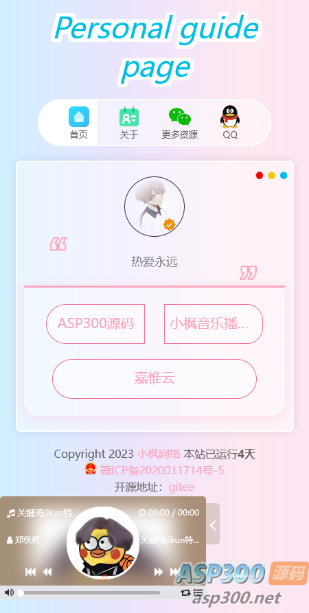 小枫新版个人引导页是小枫原创的一款简约开源的一款个人引导页源码