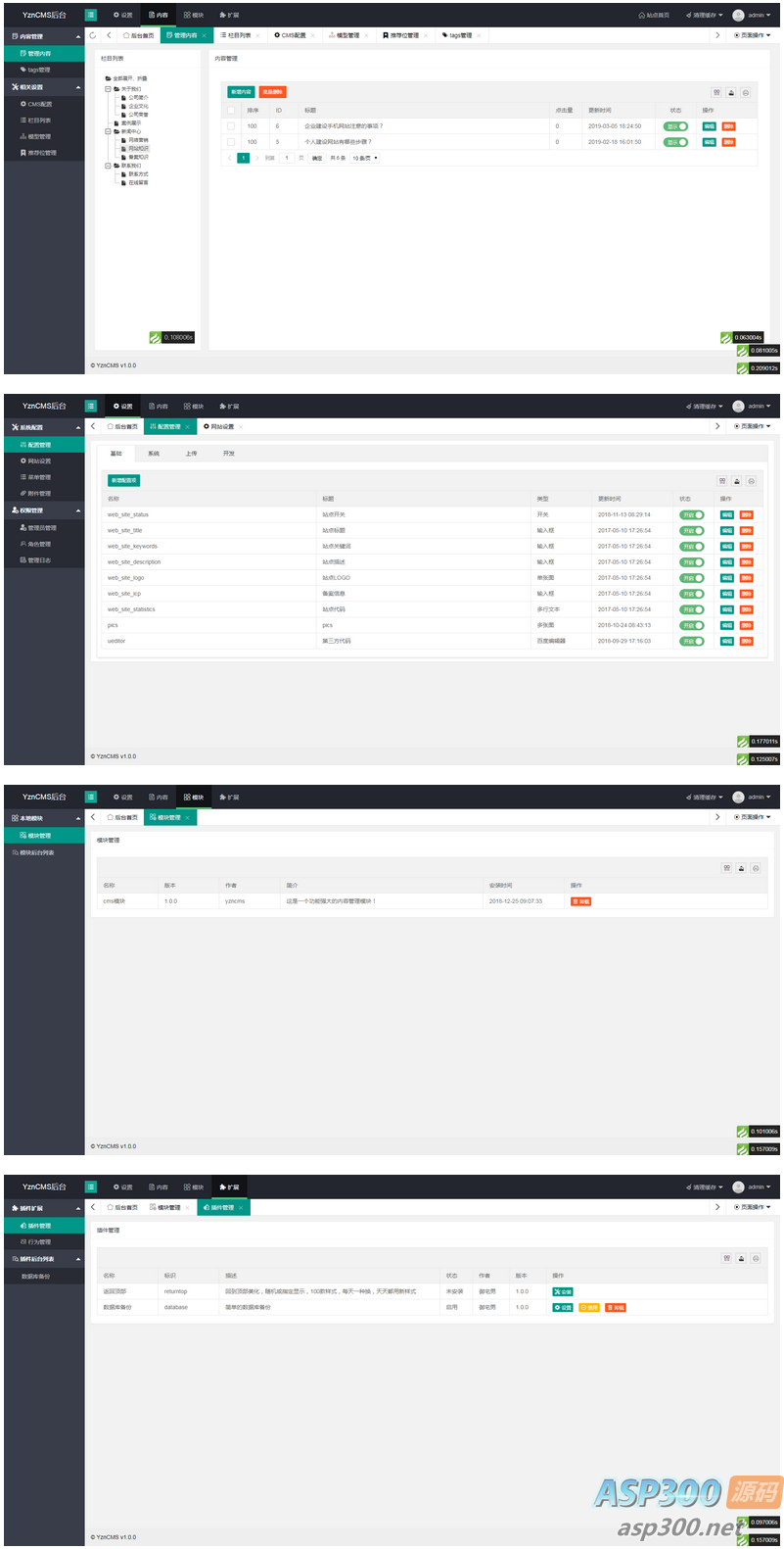 演示地址:http://demo.yzncms.com/admin/ (超级管理员:admin admin)