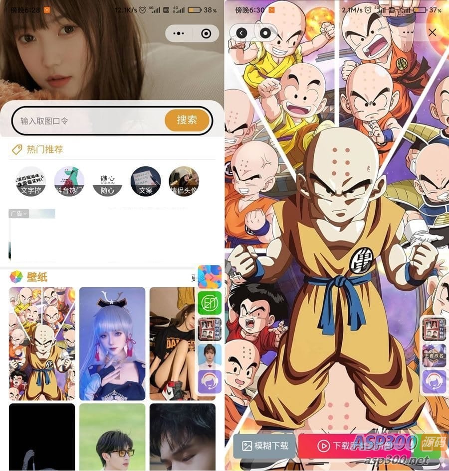 uniapp壁纸小程序源码,双端微信抖音小程序源码,Wordpress后台的小程序。