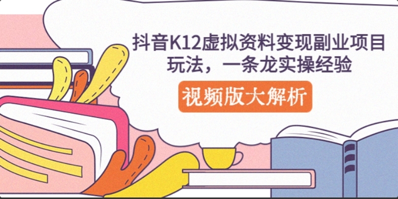 抖音K12虚拟资料变现副业项目玩法,一条龙实操经验,视频版大解析