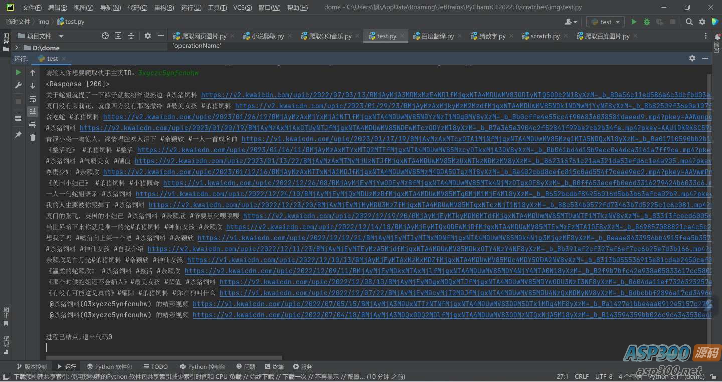 python批量爬取快手主页视频,输入作者id就可批量爬取视频,懂的都懂 自动保存到D:/video/文件夹 需要导入requests库(懂python的应该都知道吧) 指令pip install requests (win+r,cmd) 作者id可在网页链接查看到 声明:本站所有资源均来源于互联网收集,仅供学习参考使用,如若本站内容侵犯了原著者的合法权益,可联系我们进行处理。