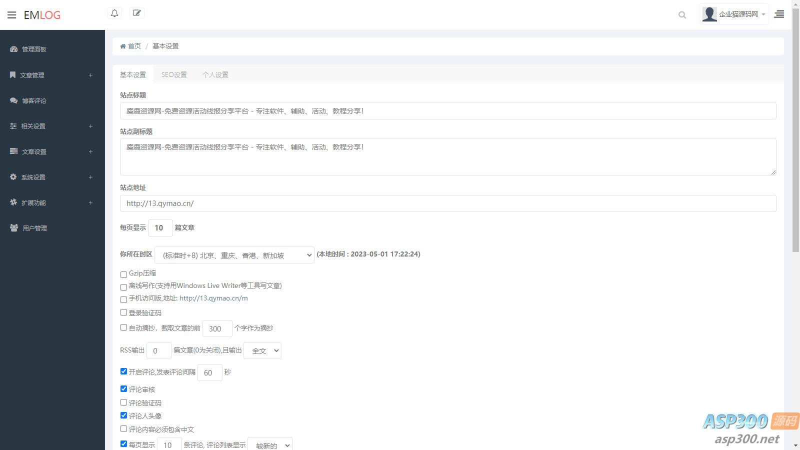 Emlog麋鹿资源网站长二开整站数据带9条采集规则