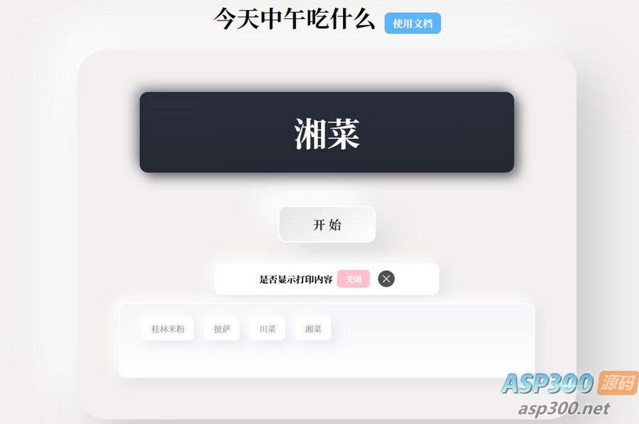 开源版随机抽取内容PHP开源带后台版,加入了可自行设置数据开关和打印列表显示等功能,以及后台填写随机数据保存即可使用,无需修改页面代码的功能。除此之外,还加入了PC端用户使用的注册键盘快捷键功能,包括空格键为执行或停止程序,Ctrl+D为显示或隐藏打印列表模块(前提:后台 显示打开模块 的开关为打开状态)。