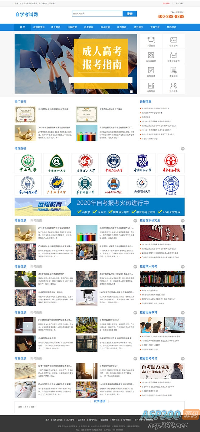 PbootCMS内核开发的网站模板,该模板适用于成人考试网站、教育考研网站等企业,当然其他行业也可以做,只需要把文字图片换成其他行业的即可;