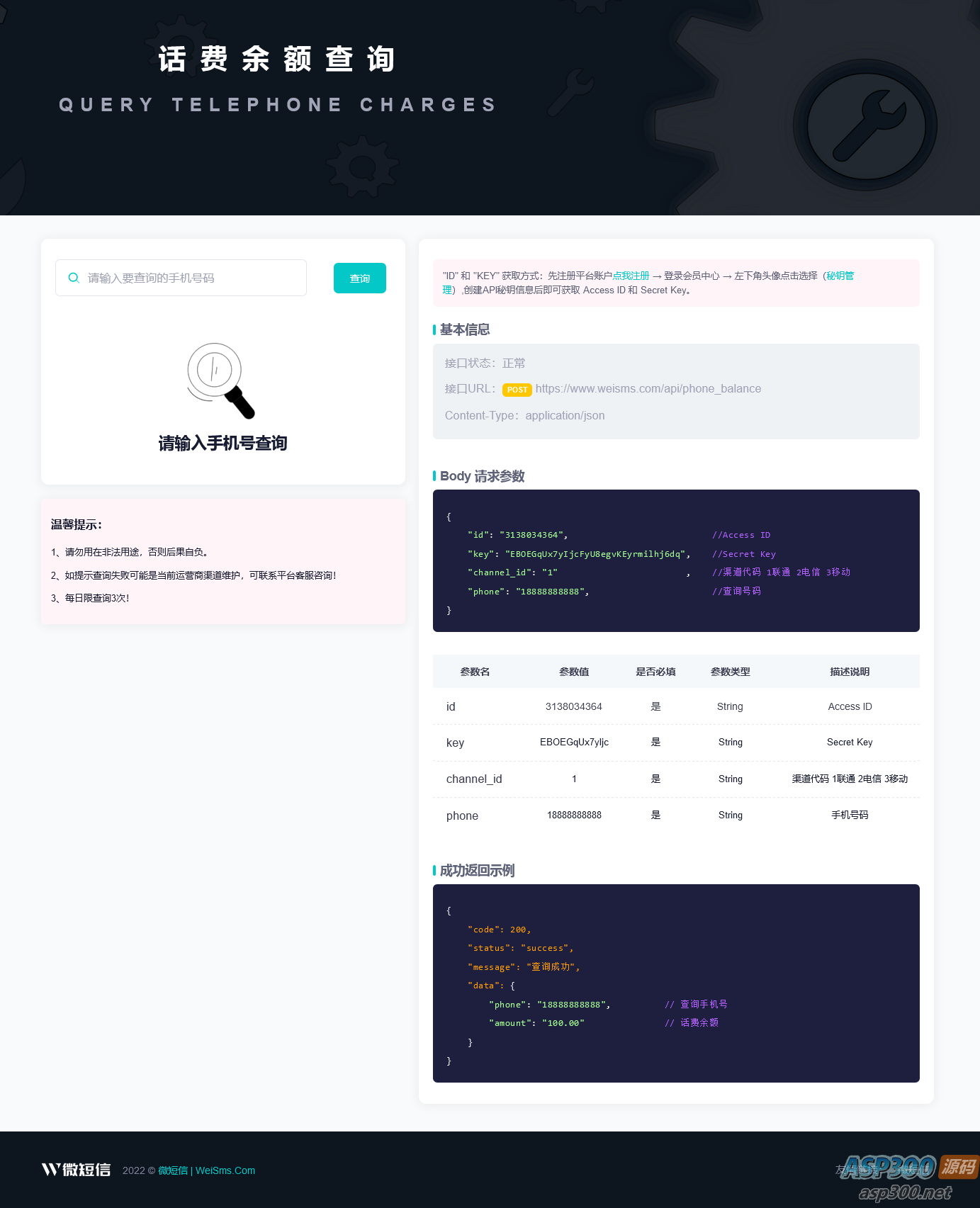 话费余额查询接口用处说明:现在很多都是做话费的运营商或代理商的,可对接本接口进行预存查询是否到账,到账后进行回调等操作,另外可用本接口进行公众号引流等! 注:如果要限制每个IP每日查询次数可在config.php文件中找到($limit = 3; // 限制每个IP请求次数) 调整后面的数字即可! 声明:该源码仿微短信平台的话费余额查询页面。 声明:本站所有资源均来源于互联网收集,仅供学习参考使用,如若本站内容侵犯了原著者的合法权益,可联系我们进行处理。