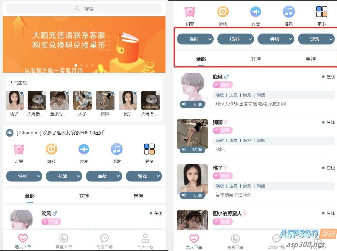 首发价值29800元的最新商业版游戏陪玩语音聊天系统3.0商业升级独立版本源码 1.增加人气店员轮播 2.优化ui界面丨优化游戏图标展示丨优化分类展示 3.增加动态礼物打赏功能 4.增加礼物墙功能 增加店员满足业绩,才能升级功能 5.增加店员等级不同,可接单的价格不同 6.更新:动态广场功能(支持视频语音图片) 声明:本站所有资源均来源于互联网收集,仅供学习参考使用,如若本站内容侵犯了原著者的合法权益,可联系我们进行处理。
