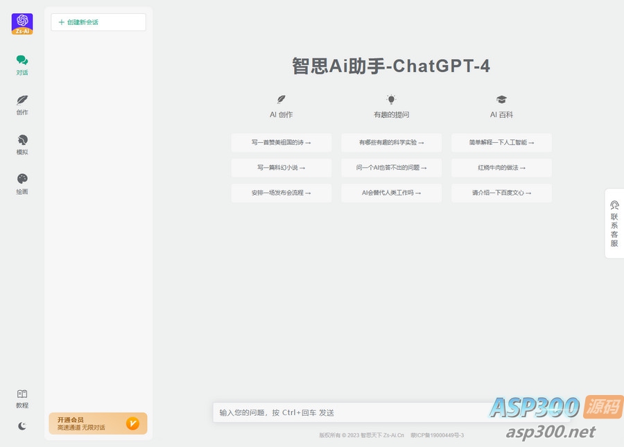 ChatGPT小程序和H5端源码,智思AI助手2.0.3去授权版。一个强大的系统,支持Web、H5和小程序进行数据互通。该源码提供多项功能,包括后台功能开通、AI自由对话、文本创作、角色模拟、充值套餐和卡密兑换。
