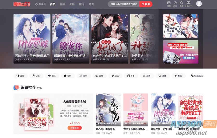 漫画网站小说源码程序CMS系统源码。这款动漫小说cms网站支持收费打赏、作者分成,采集分网站自带采集(收费),外部采集工具(免费),推荐使用网站自带采集,也可以通过火车头等采集工具,分分钟就可以打造一个资源完善的小说网站,另外APP的话是需要收费的,如果运营的话可以去官方授权,价格比较便宜。
