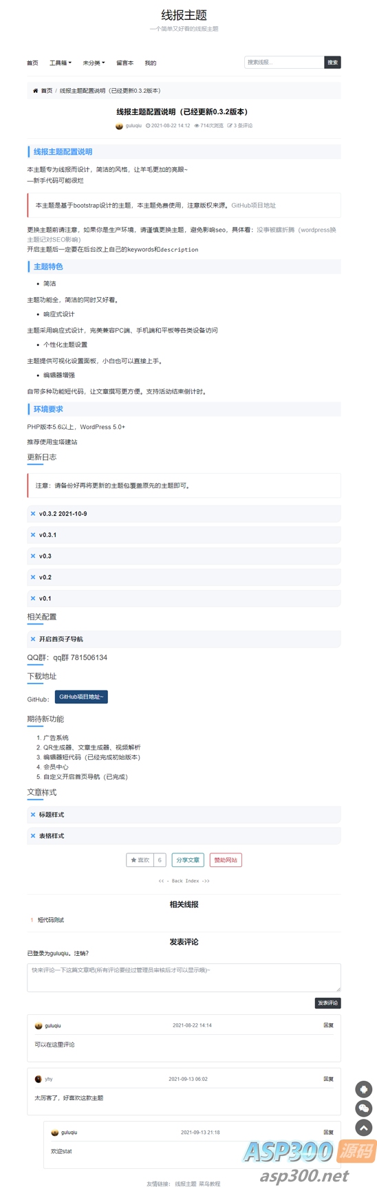本主题是基于bootstrap设计的主题,本主题免费使用,注意版权来源。GitHub项目地址