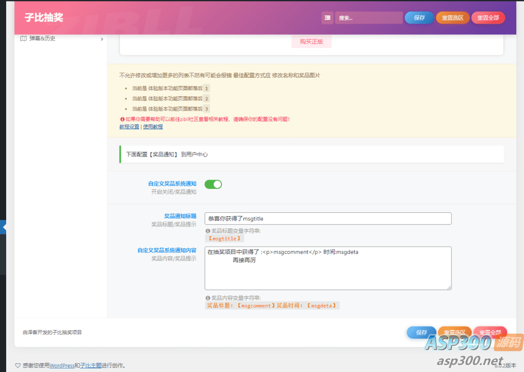 最后,这个插件还支持自定义通知。当用户中奖时,你可以通过设置通知方式,