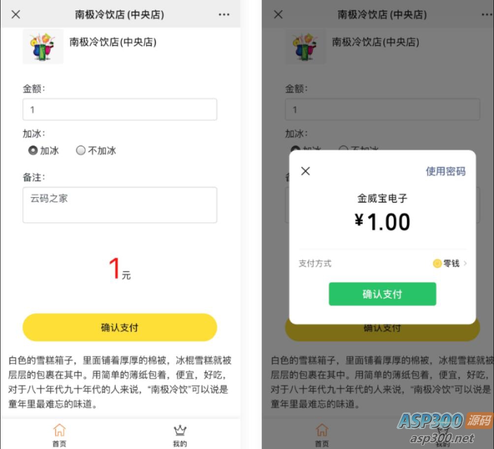 客户扫码,打开商家定义支付页面,输入金额和对应定义信息,提交微信支付,实现快速付款