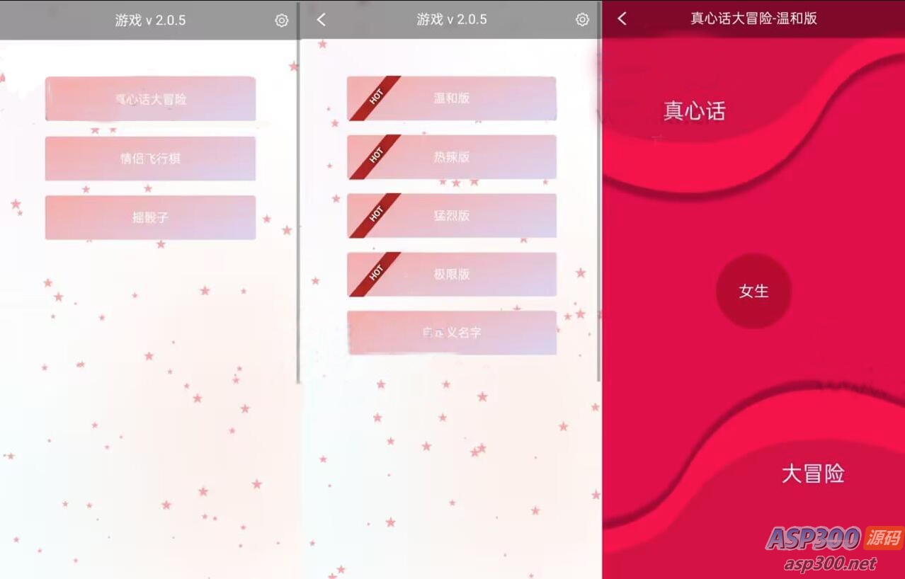 情侣飞行器网页小游戏、真心话大冒险和摇骰子三合一版本源码成为了备受欢迎的选择。这些游戏不仅提供了娱乐和互动的机会,还能增进情侣之间的感情和沟通。这个版本的源码无需加密,只需将其上传到服务器,即可轻松使用这三种游戏,游戏密码:111111。 声明:本站所有资源均来源于互联网收集,仅供学习参考使用,如若本站内容侵犯了原著者的合法权益,可联系我们进行处理。
