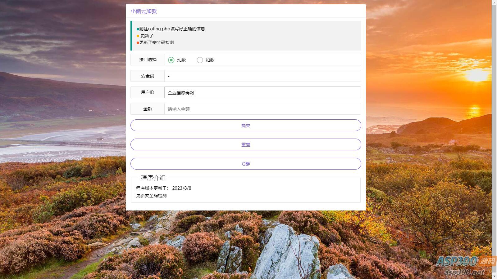 小储云商城网页加减款系统源码是一款非常实用的网页加减款系统, 可以帮助网站管理员更加方便地管理网站的收入和支出 声明:本站所有资源均来源于互联网收集,仅供学习参考使用,如若本站内容侵犯了原著者的合法权益,可联系我们进行处理。
