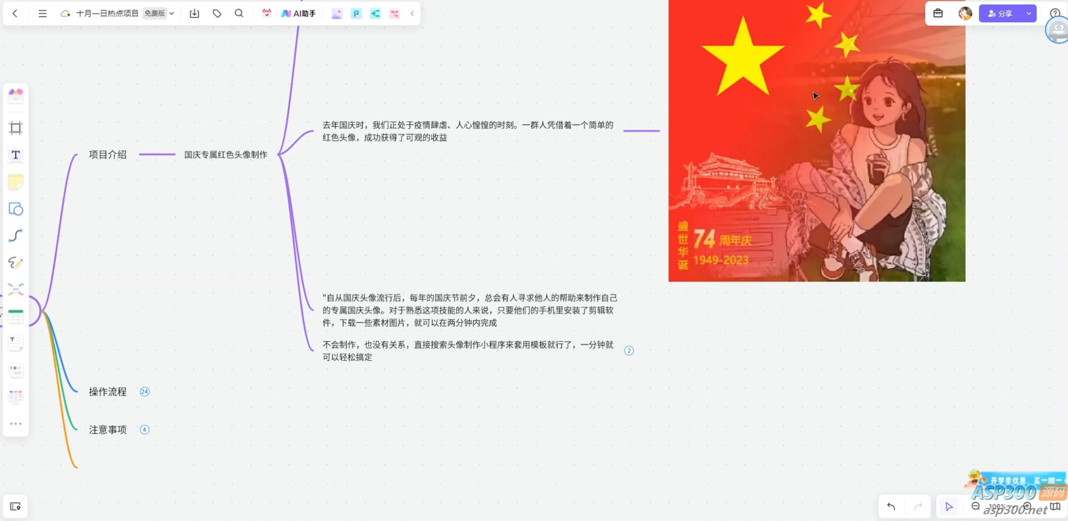 “十一”即将到来,与国庆节相关的流量急剧增加。又涌现出许多新的热点机会,自从国庆头像流行后,每年的国庆节前夕,总会有人寻求他人的帮助来制作自己的专属国庆头像,无论在何处,信息差的现象总是普遍存在的。仍有大量的人群,他们完全无法自行制作。