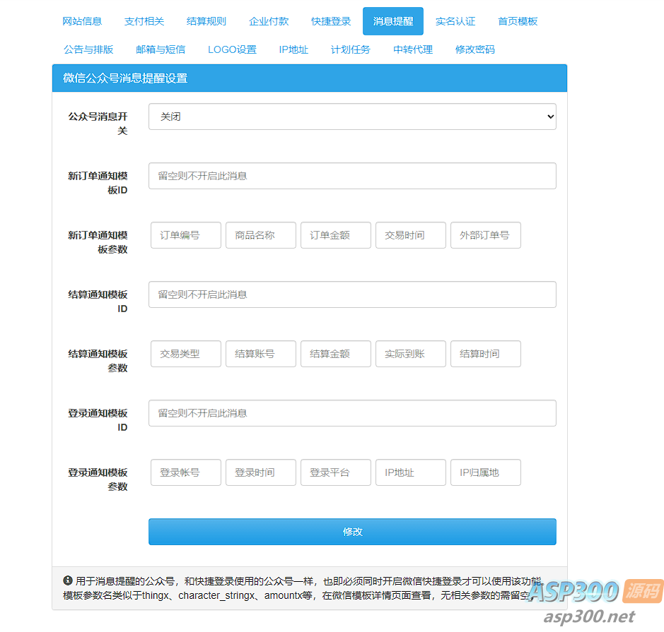 更新日志2023/08/31: 新增微信公众号消息提醒功能 重构转账付款功能,支持通过插件扩展 商户后台新增代付功能 后台新增付款记录列表 支付宝插件新增预授权支付 优化支付通道列表,支持翻页与快速复制通道 新增创建订单人机验证,防止被恶意创建订单8. 修复其他一些已知问题 声明:本站所有资源均来源于互联网收集,仅供学习参考使用,如若本站内容侵犯了原著者的合法权益,可联系我们进行处理。