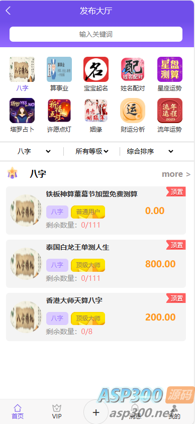 用户可以通过发布悬赏赏金算命,也可以通过升级发布测算任务来吸金