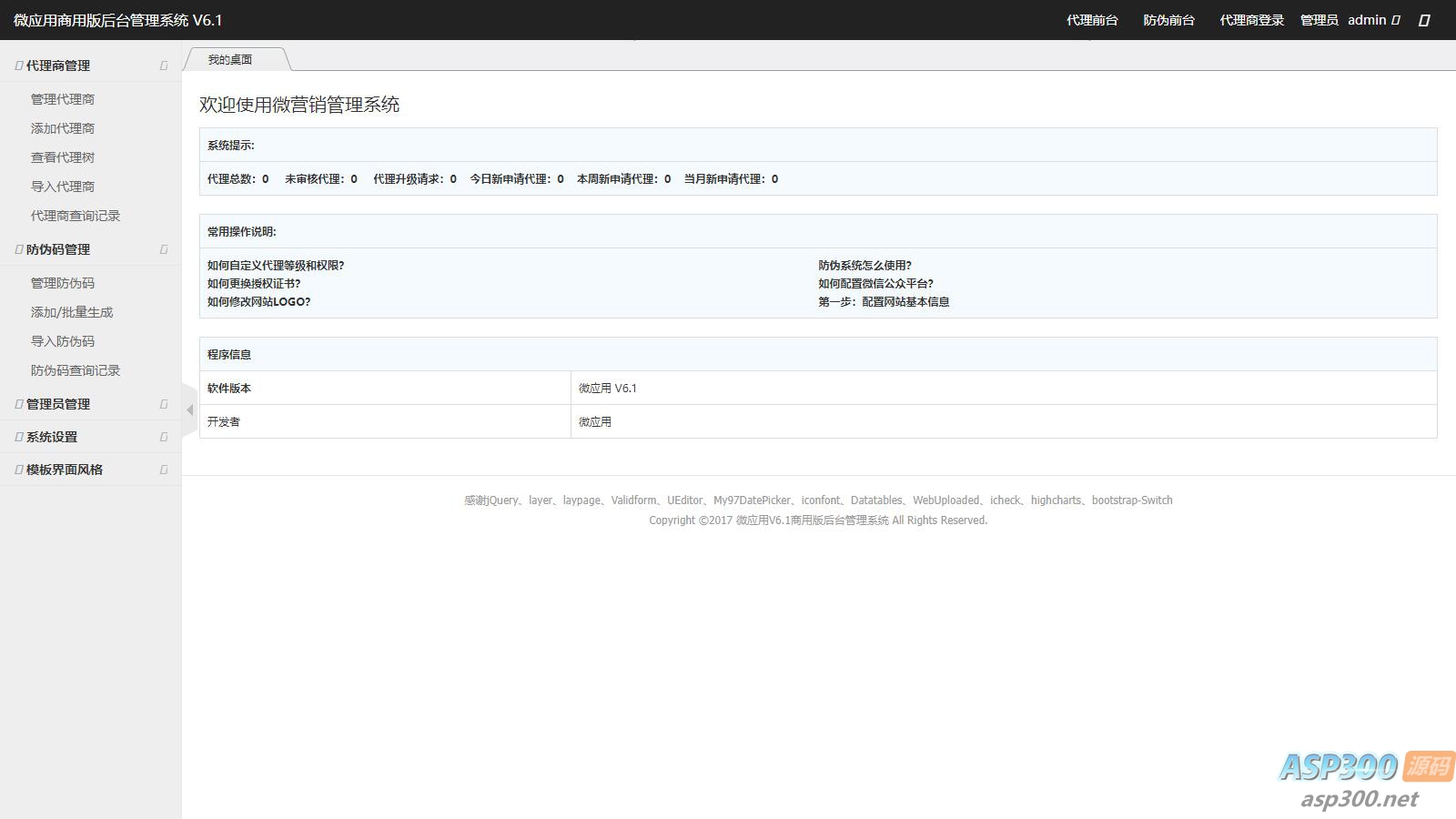 安装完成后,你可以通过域名/admin进入后台管理页面,初始管理员用户名为admin,密码为admin。代理商则可以通过你的域名/mblogin登录,初始用户名为微信号,密码为12345678。