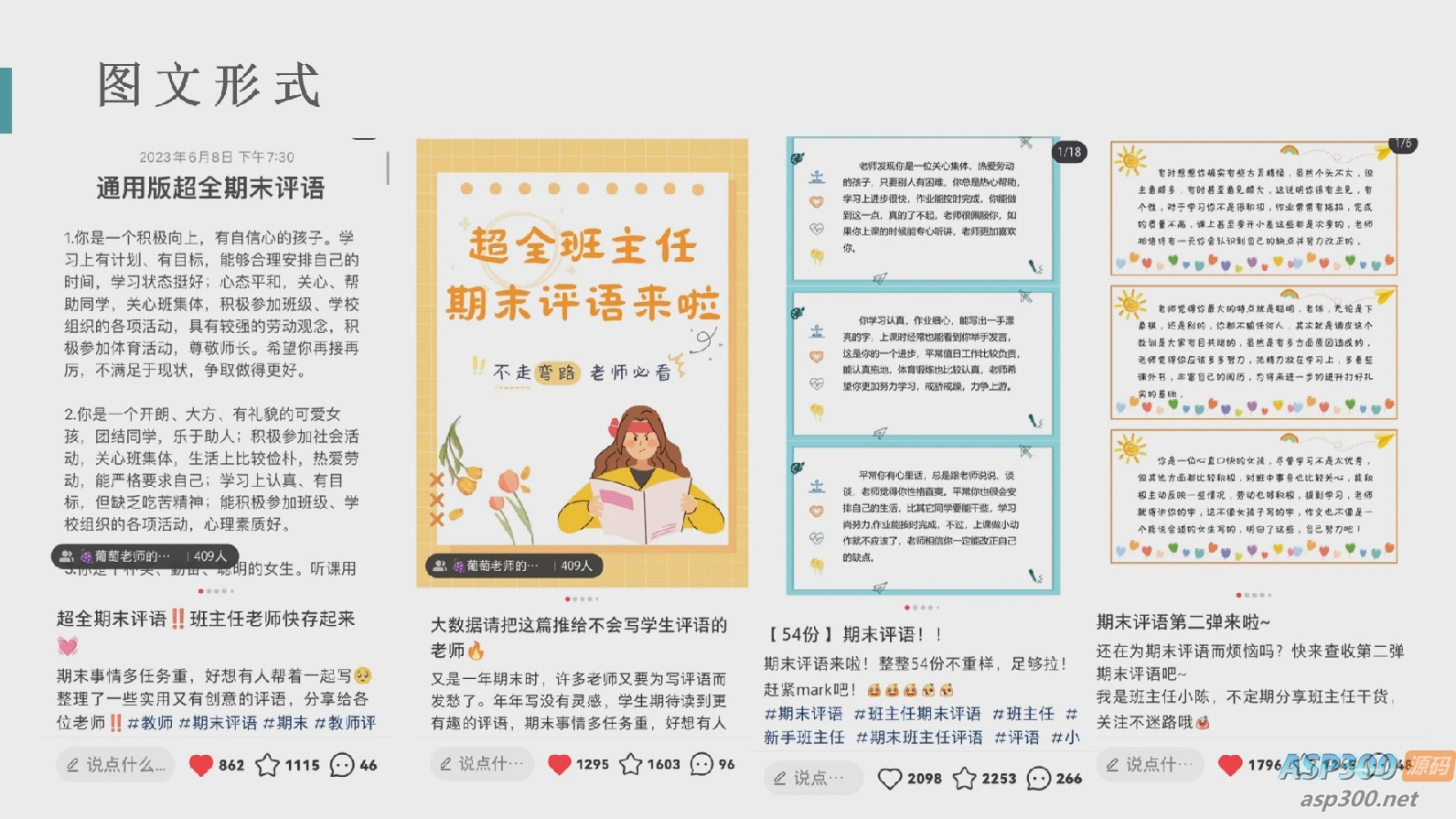 也可以通过小红书搜索一下学生评语,发布的笔记流量都很不错,基本都是上千点赞,最少的也有几百,作品操作很简单,评论区都是求分享。