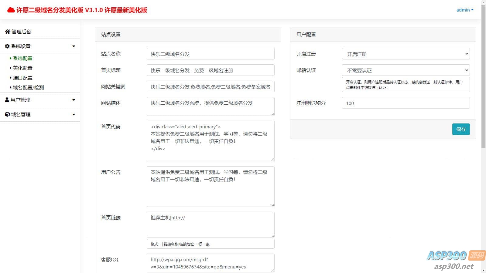 许愿快乐二级域名分发系统v2.0重置版,之前那个源码css失效了, 但是我前几天花了几个小时换了一个源码,把模板放在本地了. 源码下载放在这里了,去除广告。 声明:本站所有资源均来源于互联网收集,仅供学习参考使用,如若本站内容侵犯了原著者的合法权益,可联系我们进行处理。
