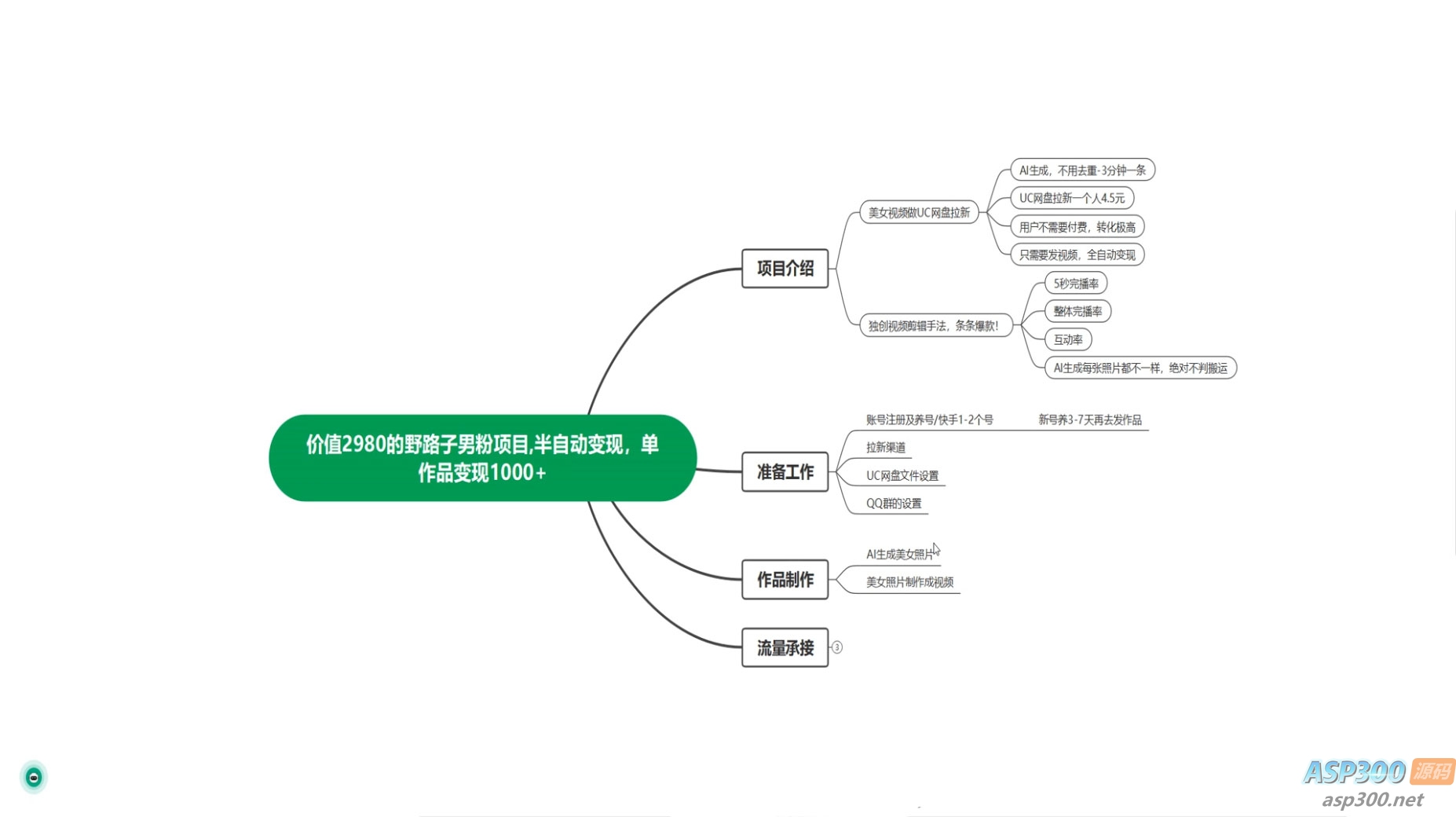 大家好,我是老吴,今天给大家带来的项目是《男粉项目,最新技术视频条条热门,一条作品 1000+,AI 生成 3 分钟一条!》,只要还有男人,男粉项目就永远不会过时!今天给大家带来的是最新的技术,让我们的视频能够条条上热门,AI 生成 3 分钟一条,不吹牛,课程内有实战视频,大家一看便知,有了流量之后进行虚拟资源的变现,粉丝不需要付费,只要下载一个软件就能免费观看,所以转化率非常高,最新渠道,目前知道的人很少,抓住红利期,项目不等人!