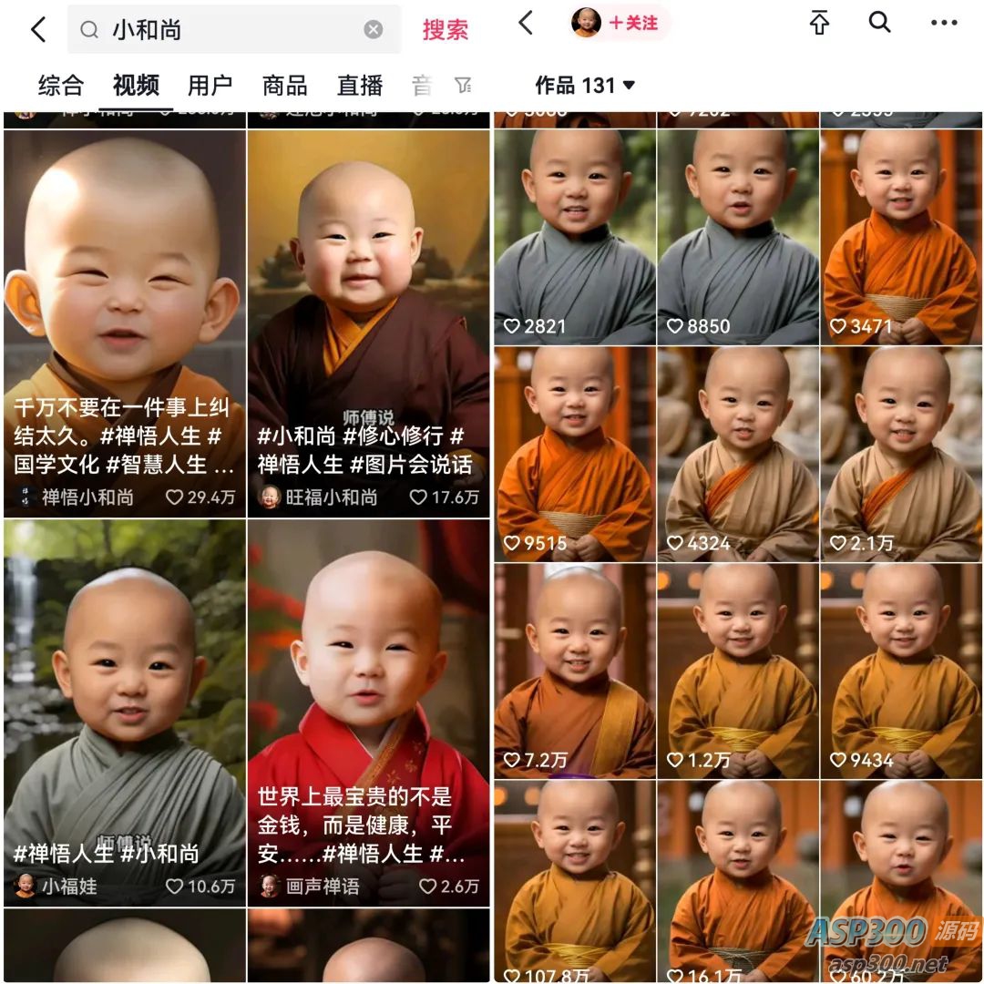 小和尚玩法相信很多小伙伴都比较熟悉了,因为现在做的人比较多,去抖音、小红书、快手搜的话,可以搜到很多这种作品,今天要拆解的是升级版,综合了美女号和小和尚的玩法,具备小和尚的逻辑。