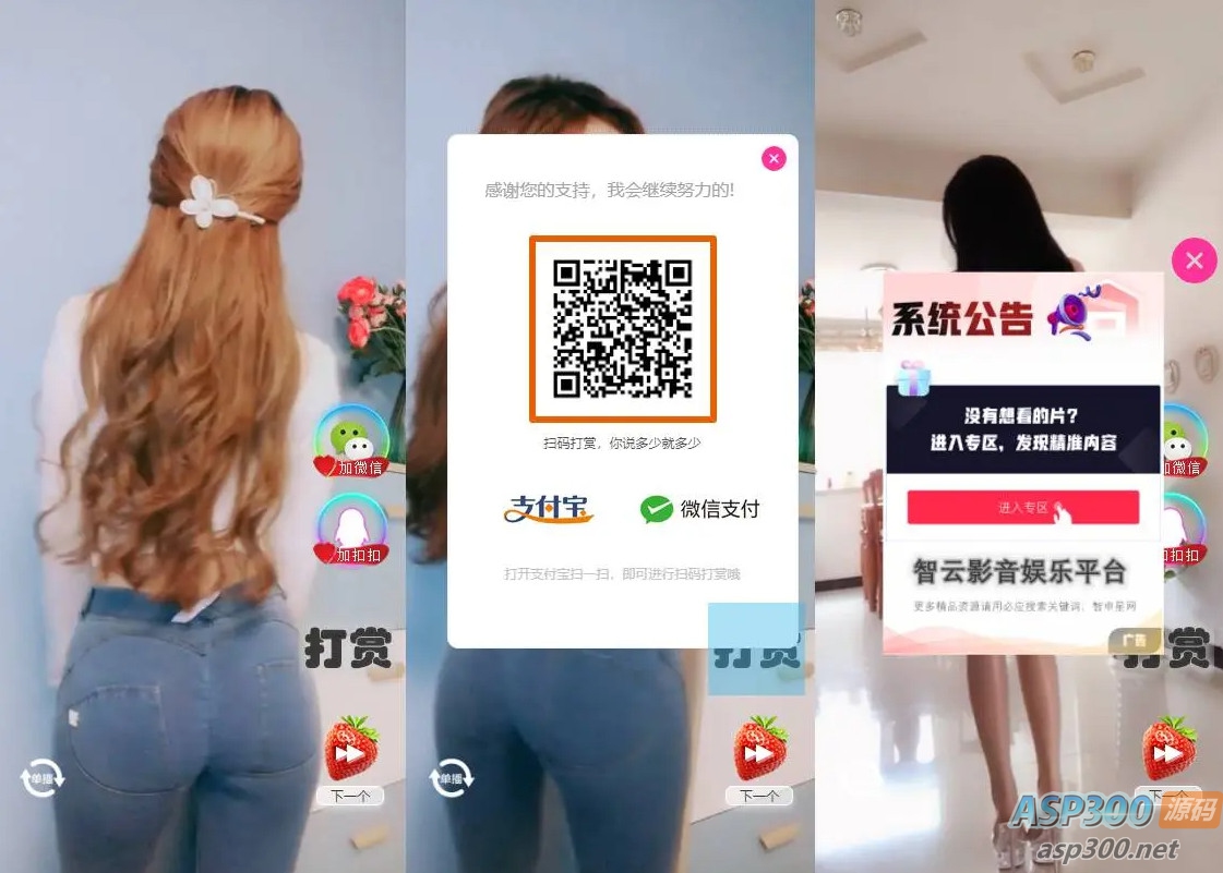 H5随机短视频滑动版带打赏源码,可封装APP软件或嵌入式观看,网站引流必备源码!数据来源抖音和快手官方短视频链接,无任何违规内容!可自行添加广告等等!