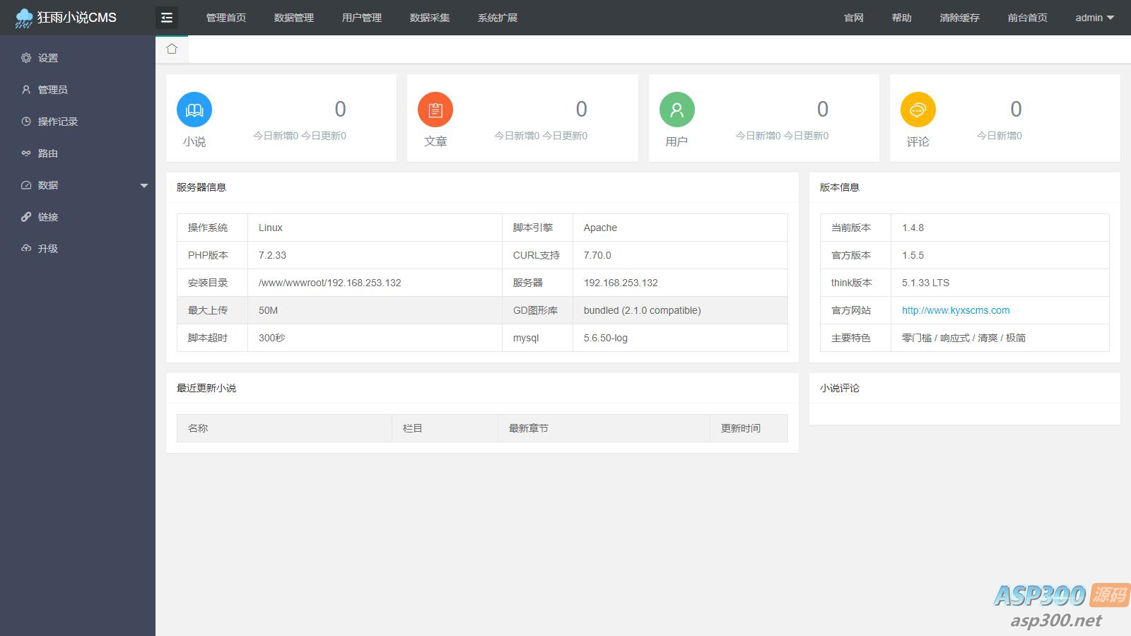搭建了下,发现未能搞出来手机端,搭建出来后打开就只发现默认的PC模板 狂雨CMS的小说系统,后台看着挺方便的,但采集规则需要自行注册该采集联盟后获取 安装教程: 安装宝塔 php7.2,绑定域名,上传源码到根目录解压 仅发现Apache伪静态,其他环境请自行替换伪静态,不了解的建议使用Apache环境搭建 声明:本站所有资源均来源于互联网收集,仅供学习参考使用,如若本站内容侵犯了原著者的合法权益,可联系我们进行处理。