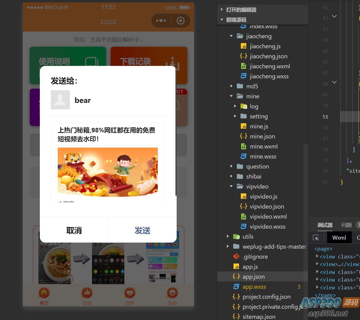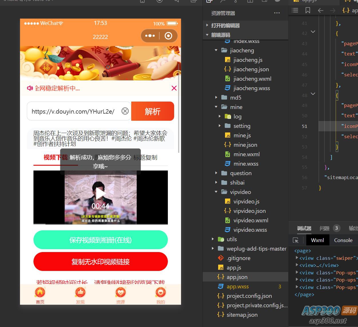 好像最近去水印小程序挺火的,你看这就不来了一个新的去水印小程序。 橙色前端是最近比较流行的,很多小程序也都是这种样式,如果你需要其它颜色的,可以自己修改一下CSS即可,小程序云开发的,无需服务器。 打开app.js查看小程序的安装说明~ 声明:本站所有资源均来源于互联网收集,仅供学习参考使用,如若本站内容侵犯了原著者的合法权益,可联系我们进行处理。