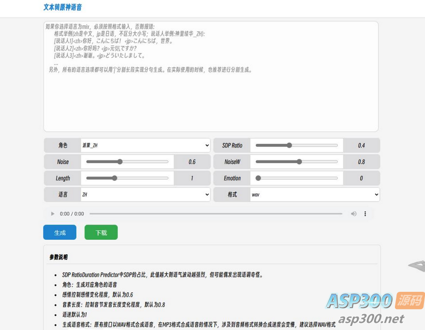 原神配音网站源码:在线文本转语音功能,包含原神x星穹铁道的API接口 这个源码是一个在线原神配音网站,可以将文本转换为原神语音。它自带了原神x星穹铁道的API接口,如果失效了,可以使用百度搜索替换其他可用的API接口。 声明:本站所有资源均来源于互联网收集,仅供学习参考使用,如若本站内容侵犯了原著者的合法权益,可联系我们进行处理。