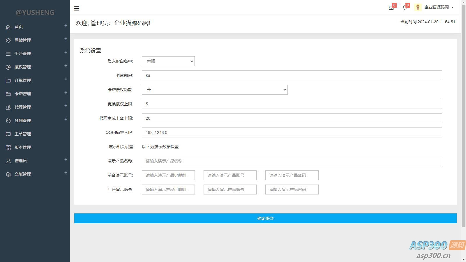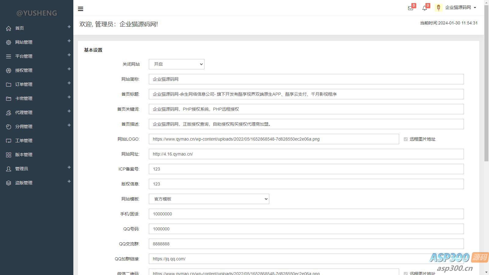 1、网站管理:包括基本管理、系统设置、公告设置、接口设置、价格设置和下载设置等。