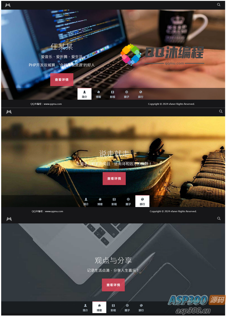html5黑色大气的个人博客全屏滚动个人主页源码下载,右键记事本即可修改。HTML+JS+CSS