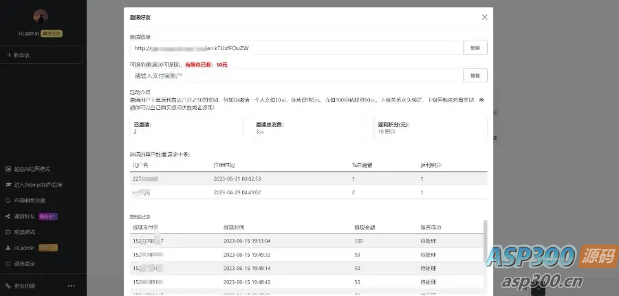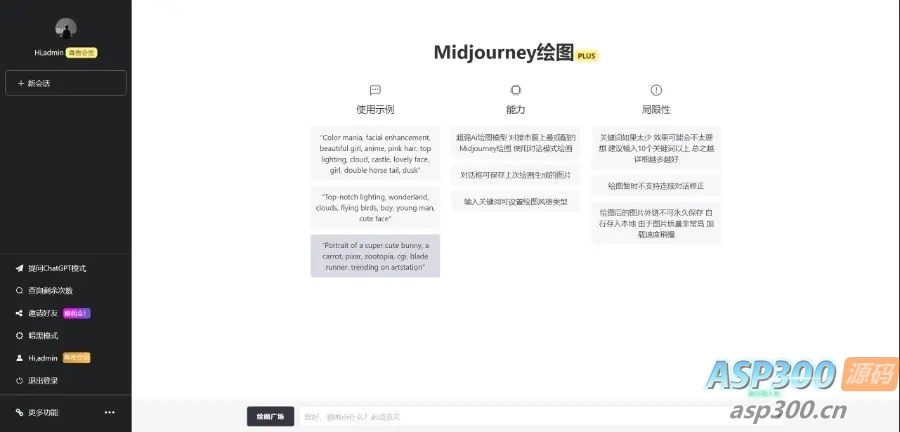 精彩功能:【AI对话 基于openai的api接口 ChatGPT 3.5】【用户推广佣金提成】【会员功能】【卡密功能】【支持 次数/时间】【key轮询、失效自动隐藏】【自定义卡密次数】【自定义出售价格】【用户免费体验次数设置】【支持IP注册限制】【邮箱验证码注册】【找回密码功能】【跳板域名 也就是防洪用的,让推广分享的链接跟主站域名不同】【设置违禁词,内容安全】