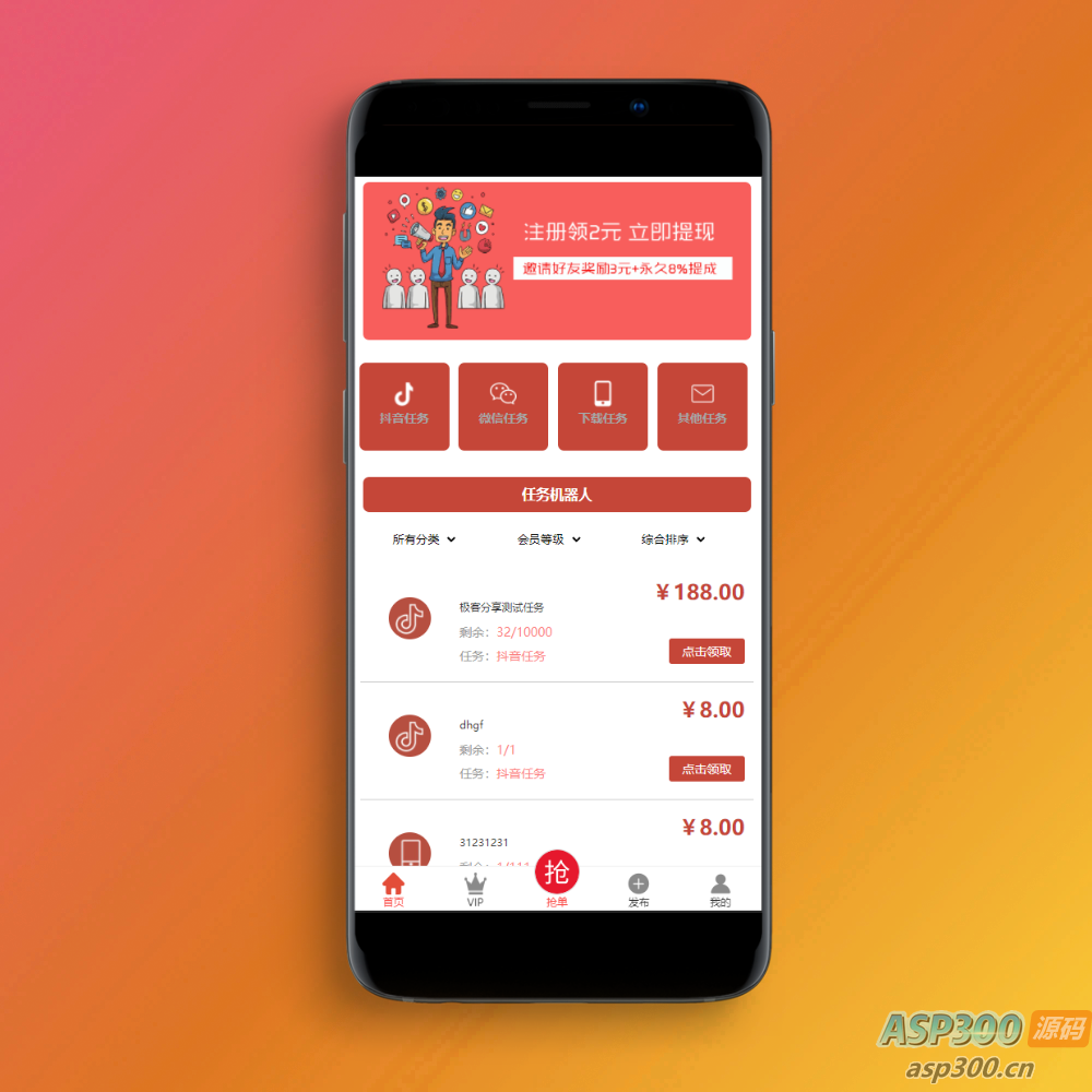 5、不同级别会员使用机器人做的任务对应不同等级会员任务。